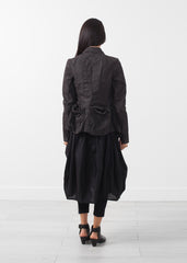 Made in Germany, the Rundholz Dip collection focuses on shape and volume while incorporating delicious materials. The Short Jacket is wrinkled to textured perfection. Button placket closure at front. Single pocket at right front. Color Mohne. 100% Cotton. Made in Germany. Ashley is wearing an X-Small.