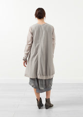 The Rundholz Black Label collection emphasizes accessibility in fashion. The Button Dress offers versatility in wear as a dress or layering top. Asymmetrical button placket at front. Accent ribbing at hem. Color Sake. 60% Cupro, 40% Cotton, 2nd Fabric 100% Cotton. Lana is wearing an X-Small.
