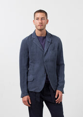 The Frimel Jacket by Hannes Roether is comfortable, lightweight, with just the right amount of casual. Snap button closure at front. Three exterior pockets, two interior pockets. Lined. Hannes Roether. Color Space. 51% Linen, 49% Cotton. Made in the EU. Matt is wearing a size Medium. Matt is 6’2”, Chest 38”, Waist 31”, Inseam 34.5”.