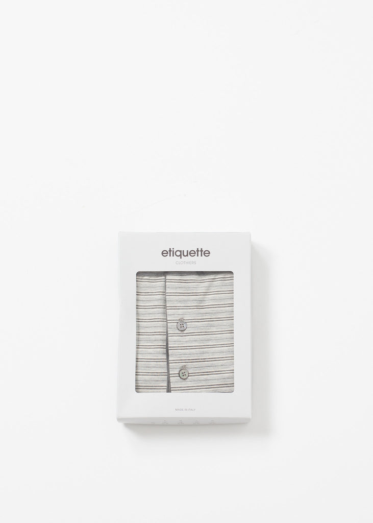 This prewashed cotton trunk is composed of the finest gauge for the softest materials. Offers stretch and softness in wear. Elastic waistband for ease. Etiquette. Color Heather Grey. 95% Cotton, 5% Elastane. Made in Italy.