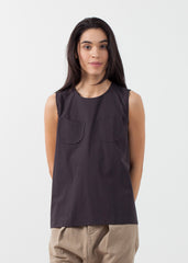 The perfect blouse is a coveted thing. The German brand has devoted itself to harnessing the mastery and construction of this timeless piece. The Lenny is a beautiful sleeveless staple for this coming summer. Two exterior pockets at front. Double snap button closure at center back neck. Lareida. Color Black. 100% Cotton. Made in Portugal. Ashley is wearing a Size 36.