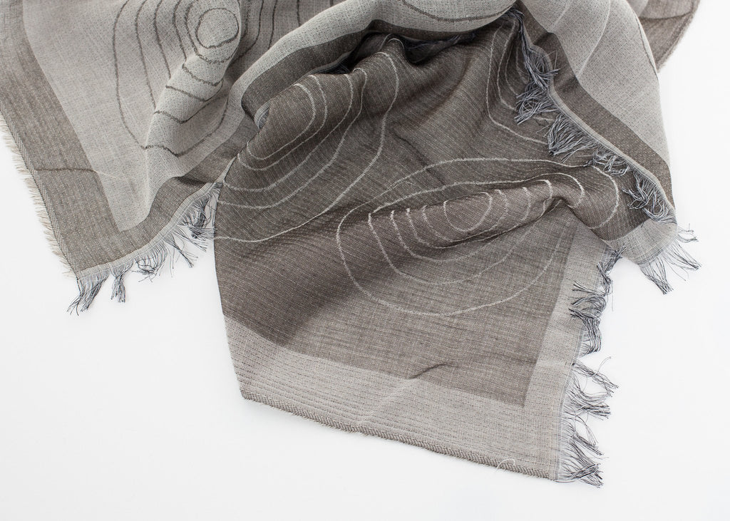 Where geometry meets fashion, the Spiral Scarf entices. Hand finished. Fringe accents. 1-100. Color Grey. 100% Cotton. Made in Italy. Length 33 X 32".