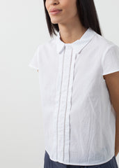 The Rano presents a sweetness to the refined prep. Single button closure at center back neck. Capped sleeves. Lilith. Color White. 100% Cotton. Ashley is wearing an X-Small.
