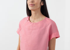 The Retenue Dress offers a wide neckline and a slightly oversized silhouette. Raglan seaming. Drawstring at back waist. Side angled pockets at front. Lilith. Color Pink. 100% Polyester. Ashley is wearing an X-Small.