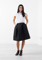 The Reversi Skirt offers a bubbly silhouette. A-line. Invisible zip closure at left side. Side angled pockets at front. Lilith. Color Black. 100% Polyester. Ashley is wearing an X-Small.