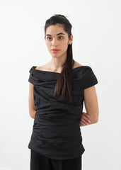 The Riot Top is a romantic piece of gathering and placement. Invisible zip closure at side. Lilith. Color Black. 100% Polyester. Made in Tunisia. Ashley is wearing an X Small.