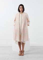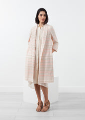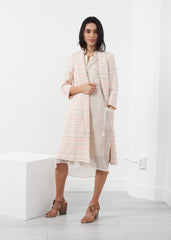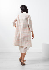 Pretty in peach, the Roulette Jacket is texturally pleasing with subtle sweetness. Side angled pockets at front. Lilith. Color Peach. 81% Cotton, 19% Acrylic  Made in Tunisia. Ashley is wearing an X Small.