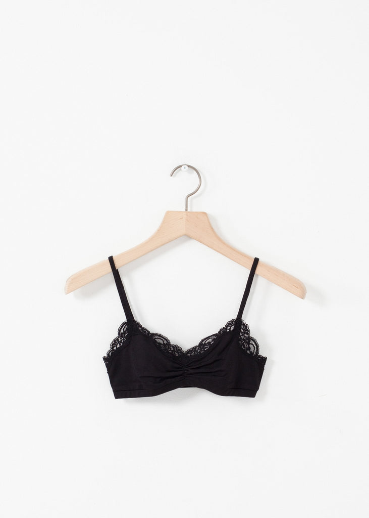 The Ruche Bra from Only Hearts offers a delicate fit for your everyday needs with a fun lace trim. Color Black. 90% Nylon, 10% Lycra. Made in U.S.A.