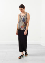 Eclectic floral print is in for spring, and we want it to stay. The Rulah Tank is an easy top for layers or as a statement. Double breasted pockets at front. Scooped neckline. Hannes Roether. Color Original. 70% Cotton, 30% Silk. Made in the EU. Lana is wearing an X-Small.